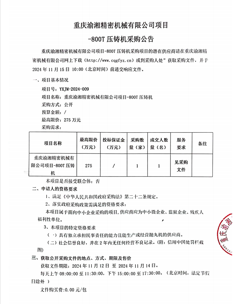 重慶渝湘精密機械有限公司二期工廠目視化及6S 管理項目競爭性采購公告